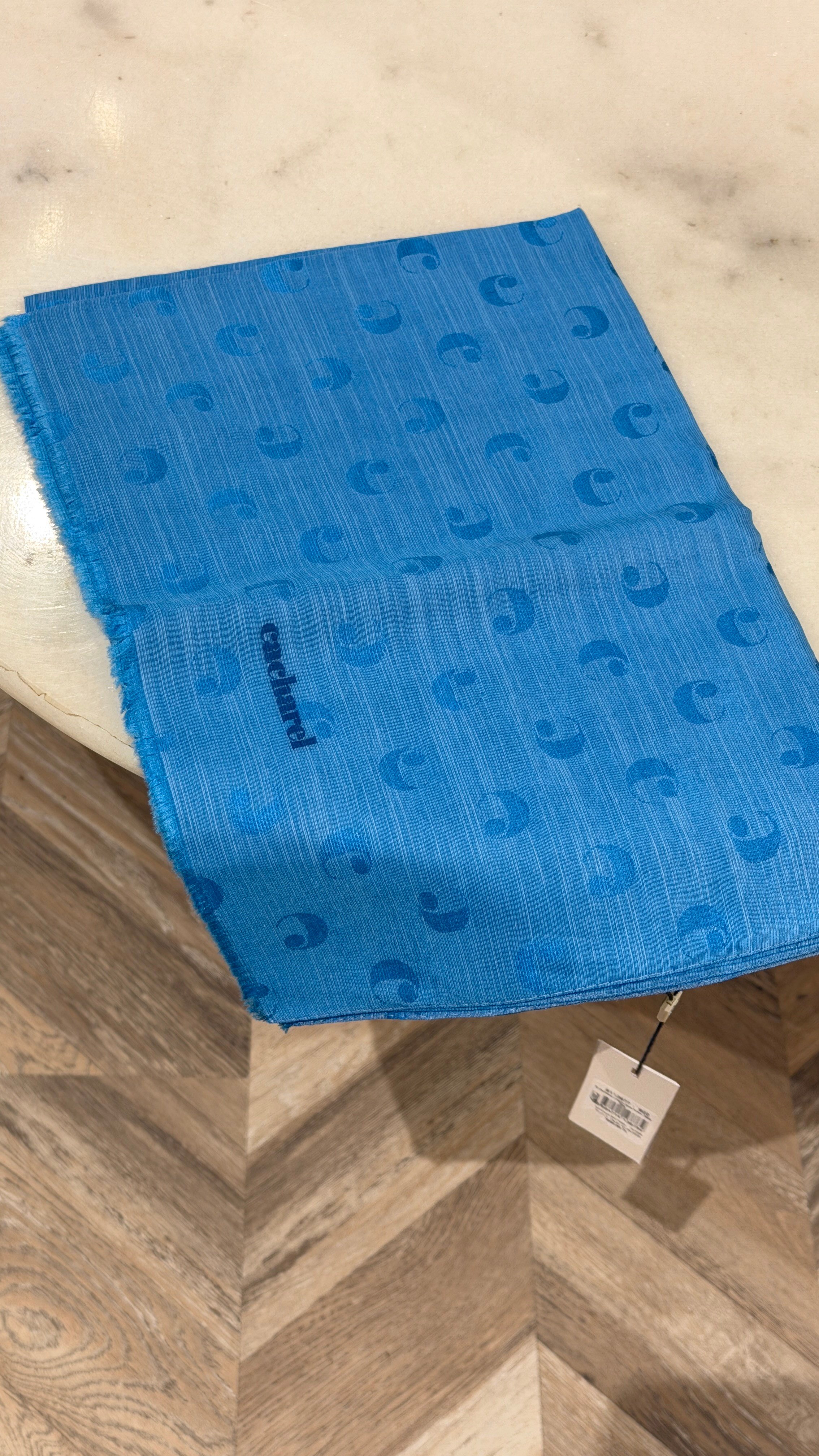 B.Cacharel Logolu İpek Koton Jakar Etol Şal Mavi
