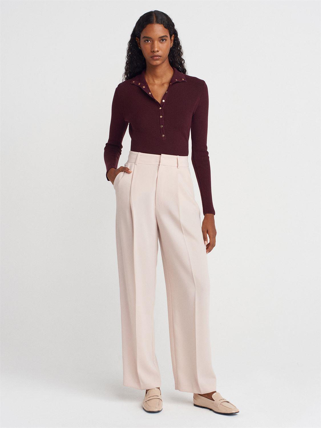 Dik Yaka Çıtçıtlı Triko Kazak Bordo
