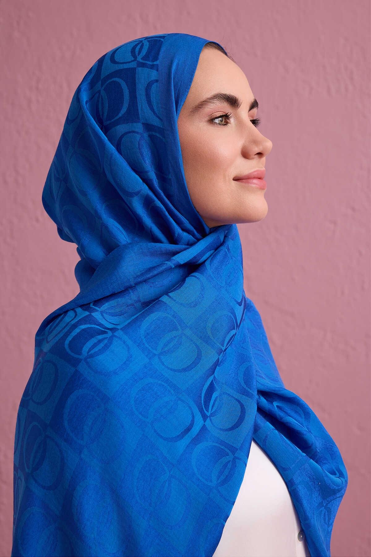 İmannoor Dama Desen Naia Pamuk Şal Mavi