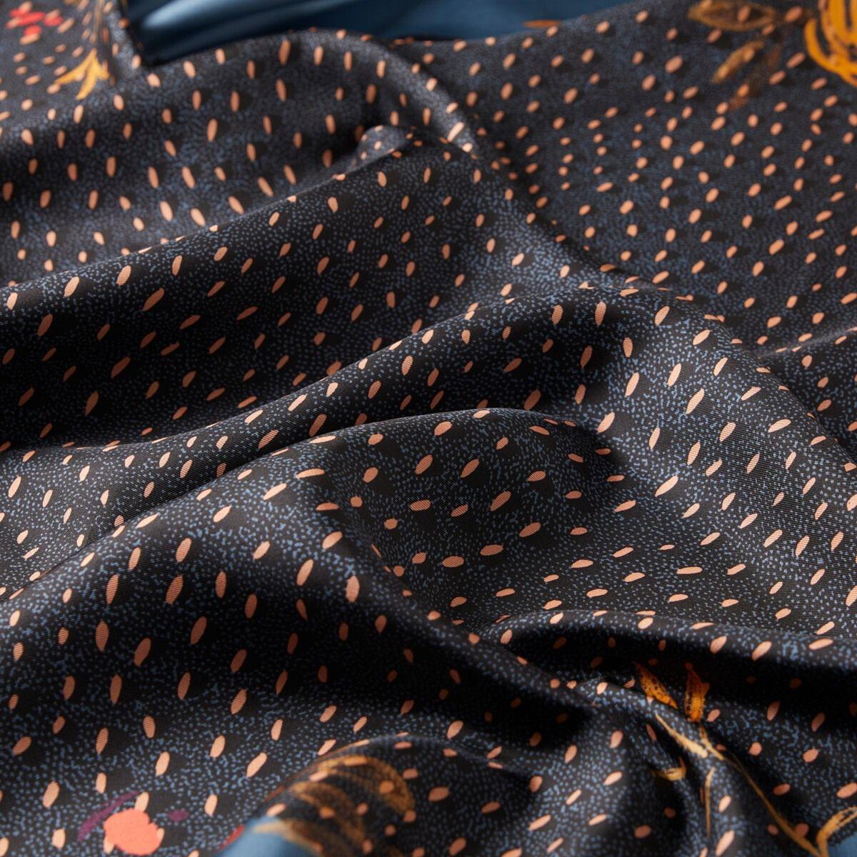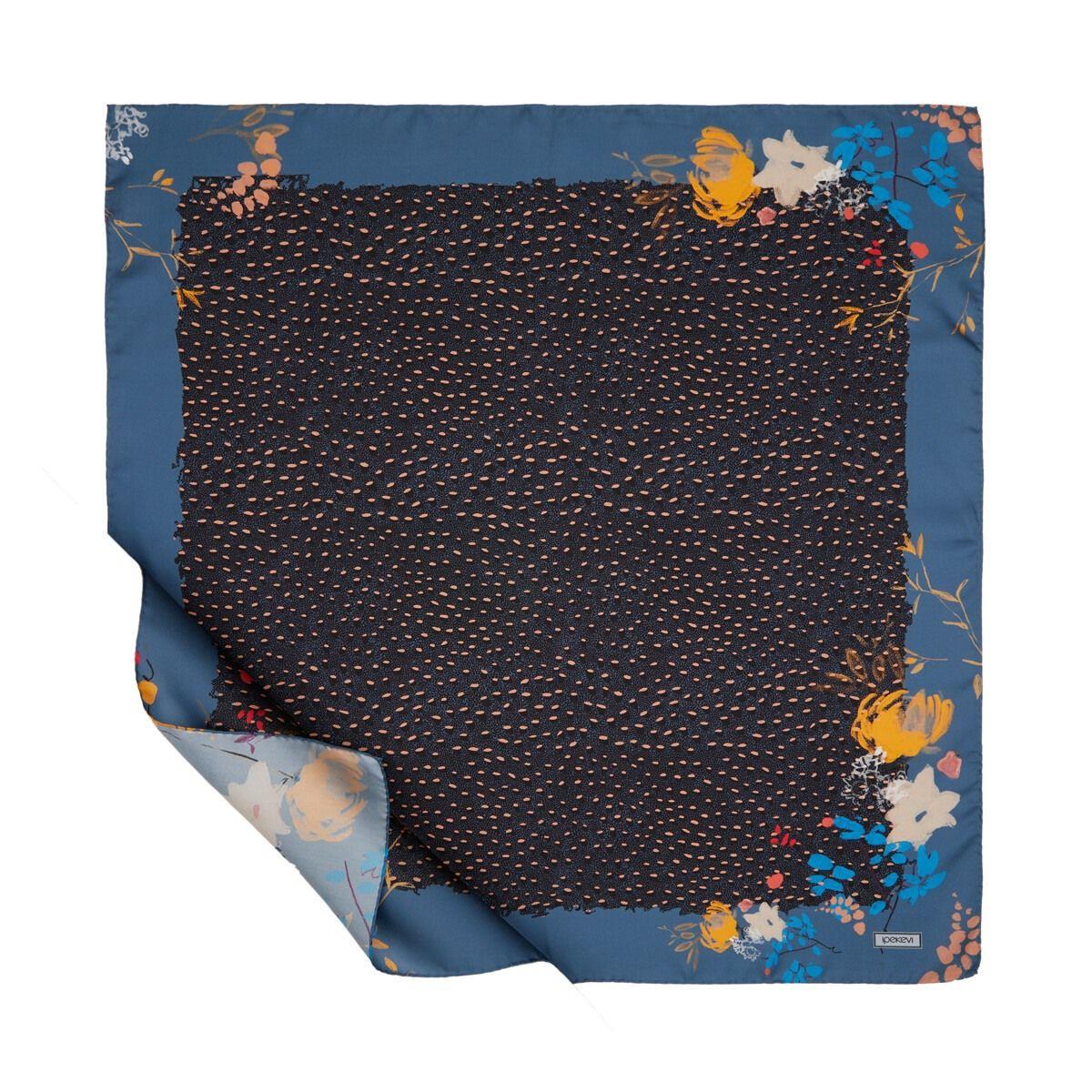 İpekevi Kürk Çiçek Tivil İpek Eşarp İndigo Füme
