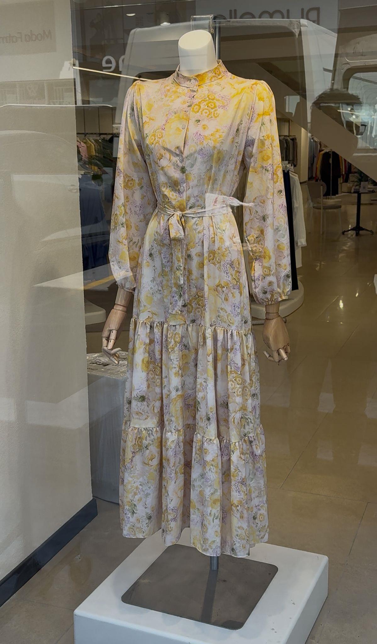 Semra İlhan Çiçek Desenli Elbise Sarı