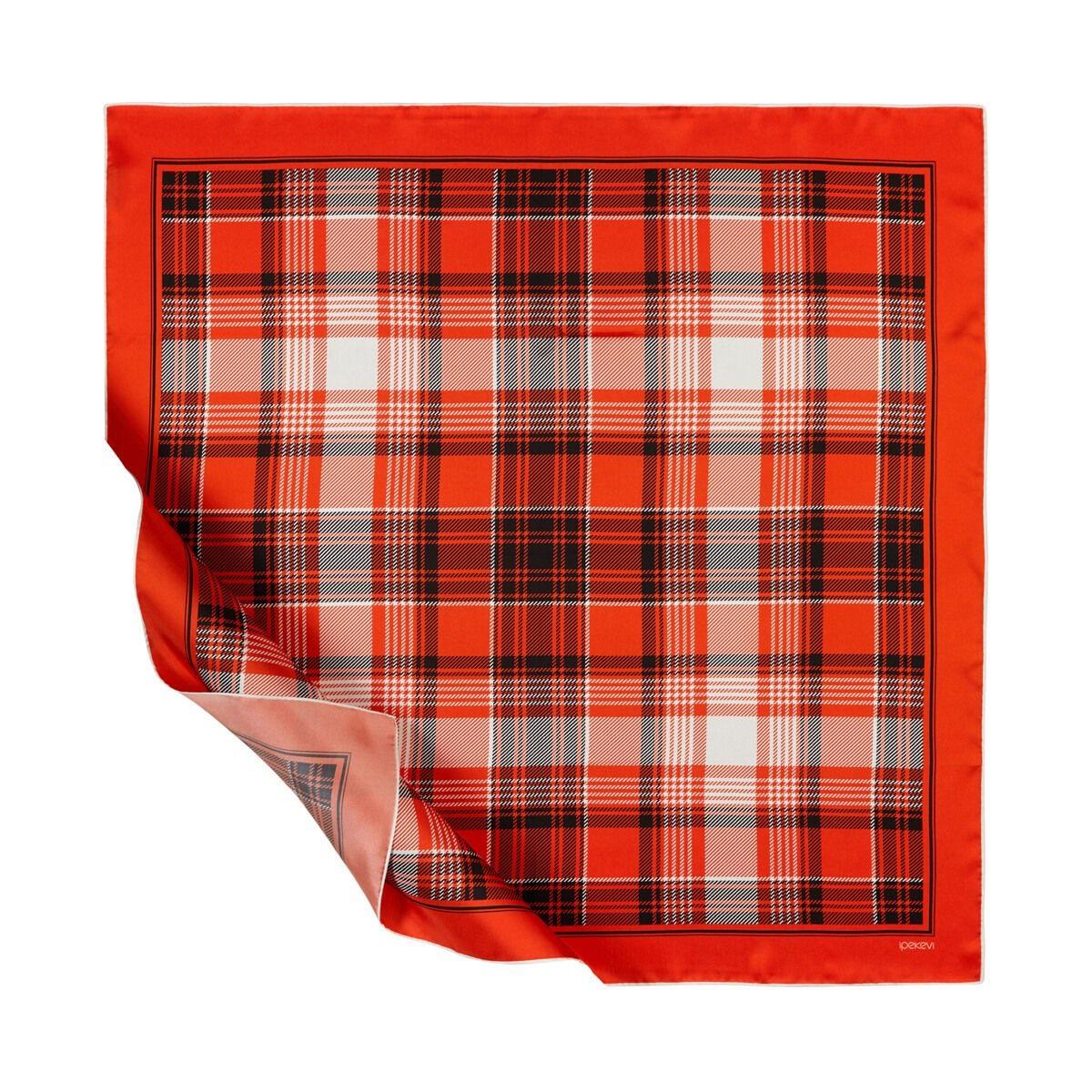 İpekevi London Ekose Tivil İpek Eşarp Turuncu