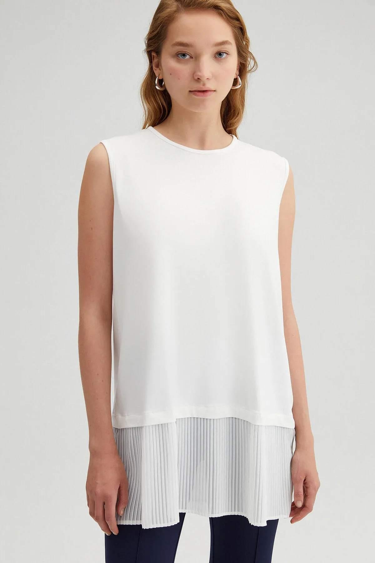 Touche Kolsuz Piliseli İçlik Tunik Beyaz
