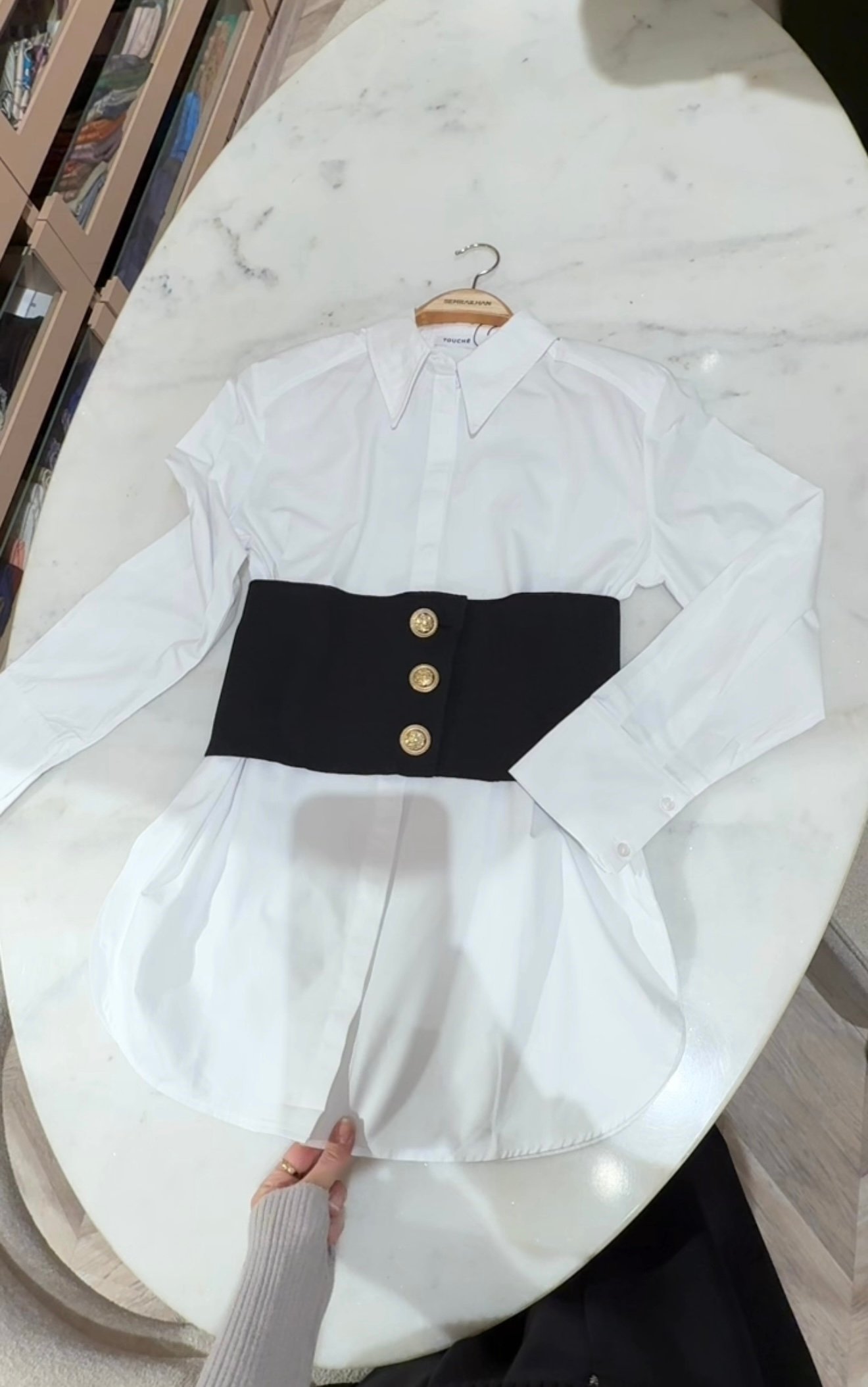 Touche Vatkalı Korse Detaylı Poplin Gömlek Beyaz