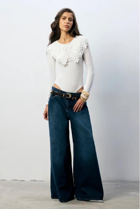 Touche Brode Yaka ÇıtÇıtlı Body Ekru