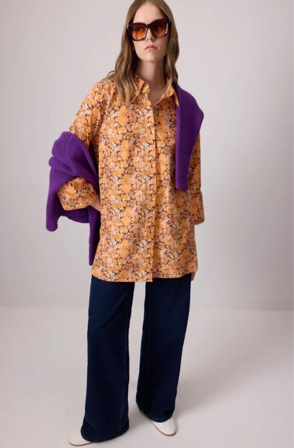Touche Çiçek Desenli Pamuklu Gömlek Turuncu