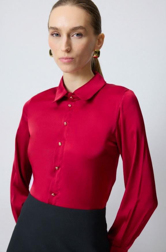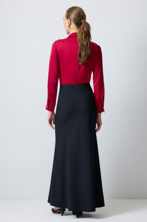 Touche Çıtçıtlı Saten Gömlek Body Bordo