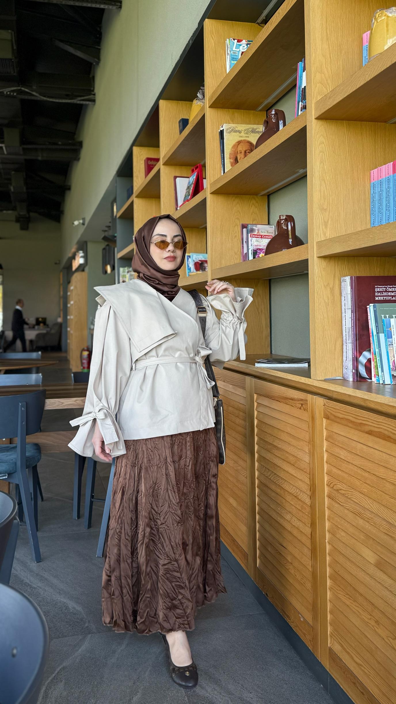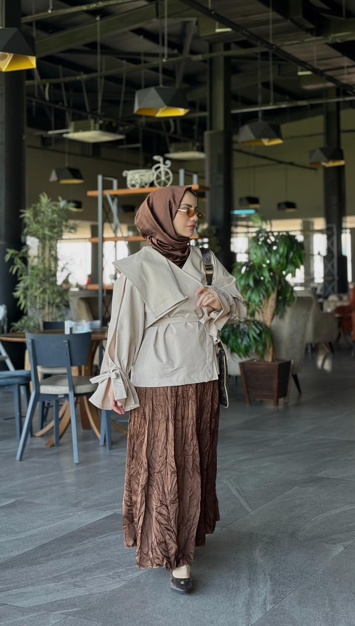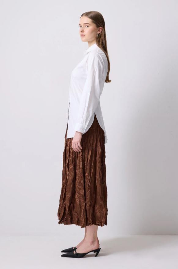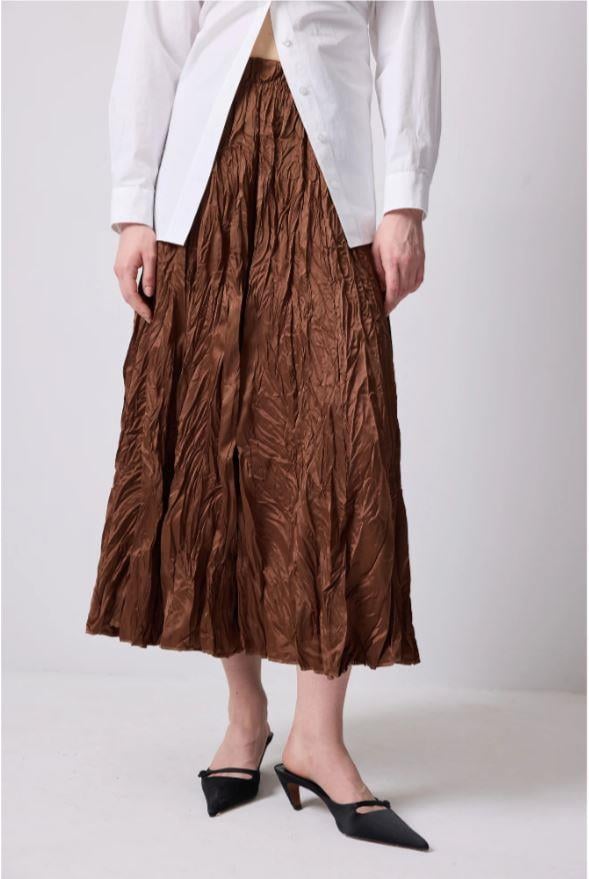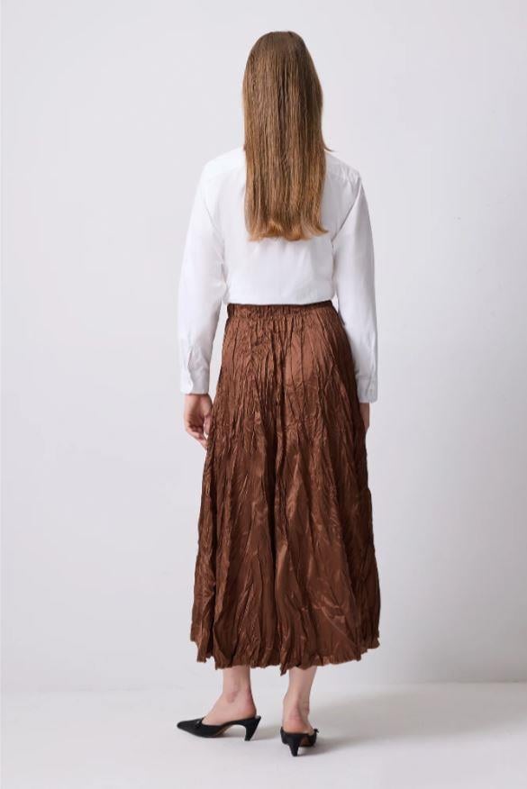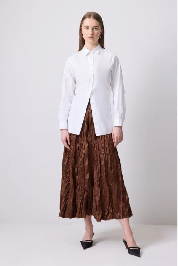 Touche Crushlı Saten Etek Kahverengi