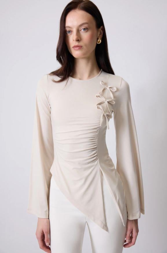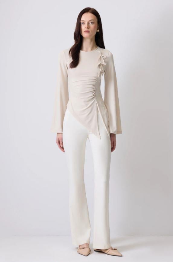 Touche Fiyonk Detaylı Drapeli Bluz Taş