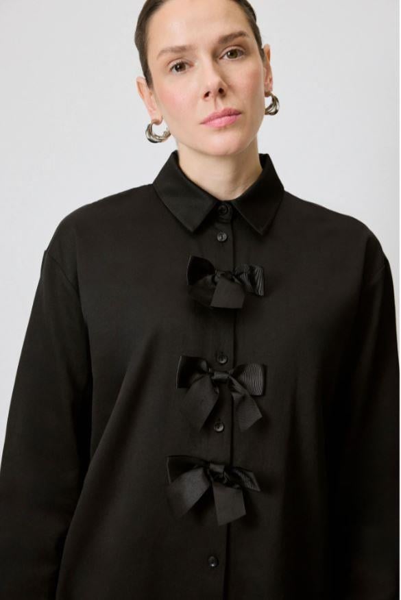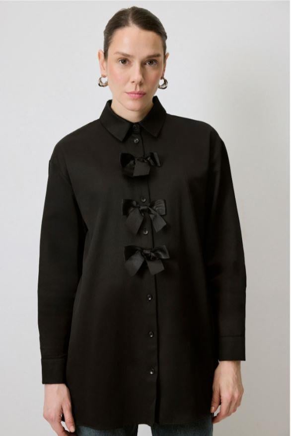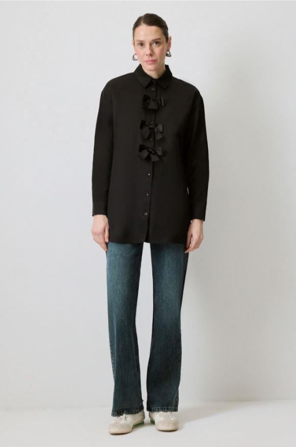 Romantik ve zarif dokunuşları sevenler için: Fiyonk detaylı gömlek. Klasik şıklığı modern bir dokunuşla buluşturan bu tasarım, yumuşak kumaşı ve dikkat çekici fiyonk detaylarıyla stilinize özgünlük katıyor. Gündüzden geceye kolayca uyarlanabilir bir parça.