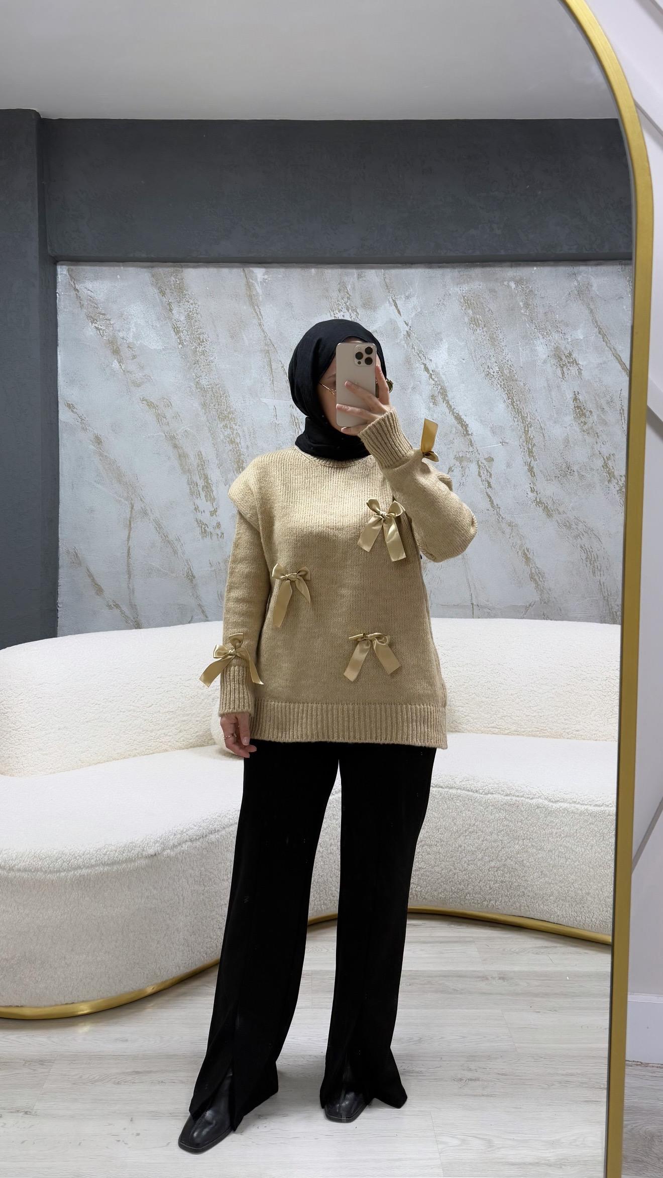 Touche Fiyonk Detaylı Triko Kazak Bej